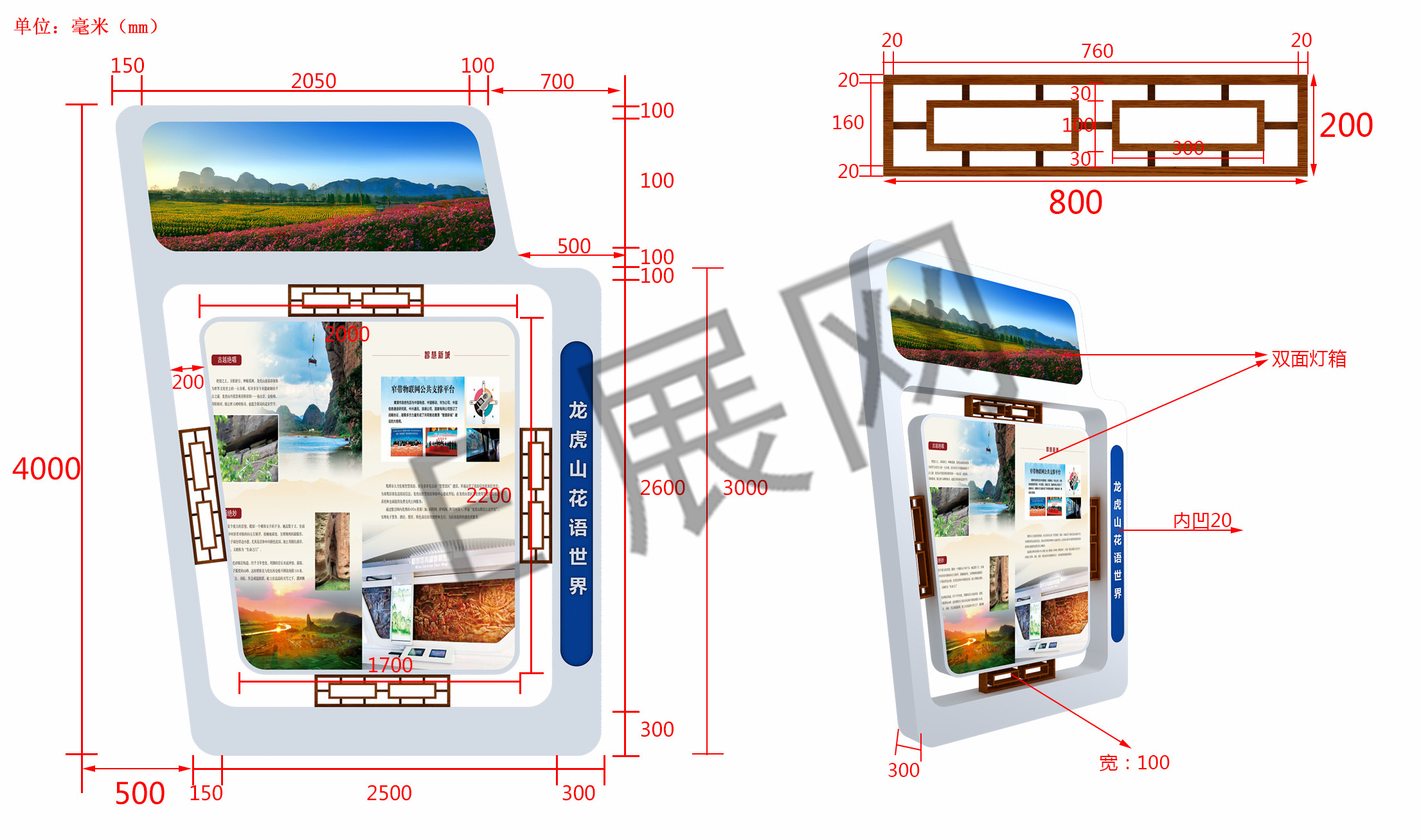 描述:整体木结构乳胶漆 接待台喷漆,画面为灯箱画面